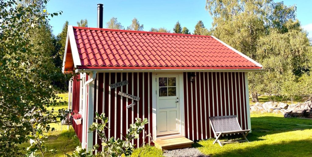 Das kleine rote Holzhäuschen „Pippi´s Cottage“ wurde 2023 neu gebaut und befindet sich auf einer kleinen, idyllischen Farm (Pippi´s Farm“) mit vielen Tieren (Mini- Shetlandponies, Schafe, Katzen, Hund), die oft direkt am Haus grasen und zutraulich sind.