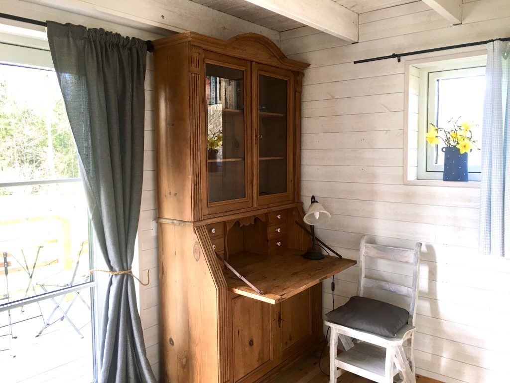 Das Haus ist isoliert und winterfest und verfügt über eine moderne Küchenzeile (Ceranherd/ Ofen/ Spülmaschine etc), einen Holzofen (ebenfalls mit Koch-/Backmöglichkeit), Holzdielen sowie einer Fußbodenheizung im Badezimmer. Außerdem hat es eine Wärmepumpe/ Klimaanlage, wlan inclusive.